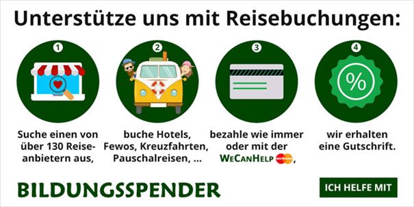 Die Buchungen für den nächsten Jahresurlaub stehen bevor. Das ist besonders lukrativ. Mit einer einzelnen Reisebuchung kann man schnell ohne Mehrkosten eine Gutschrift von über 100 € erlösen. Eine Registrierung bei WeCanHelp ist nicht erforderlich. Euren Reiseanbieter findet ihr unter https://wecanhelp.de/hsp-hilfe/reisen oder klickt einfach unten ins Bild. Ihr findet wirklich alles für eure Urlaubsplanung: Bahnfahrten, Flüge, Hotels, Ferienwohnungen, Pauschalreisen, Kreuzfahrten, ...